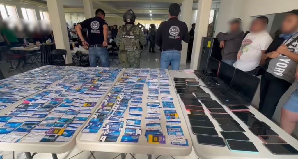 Con base en la información recabada, se solicitó una orden de cateo, misma que concedió la Autoridad Judicial. El personal de la Fiscalía y de la SEDENA llevó a cabo el aseguramiento de equipos de cómputo, mobiliario de oficina, más de mil chips de telefonía celular, equipos telefónicos y envoltorios con droga. Además, se identificó que los presuntos delincuentes utilizaban un software posiblemente desarrollado en China para las extorsiones y fraudes.