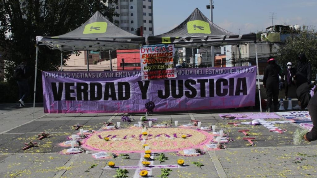 Las manifestantes explicaron que el objetivo del acto es exigir verdad y dignificar la memoria de las víctimas de feminicidio.