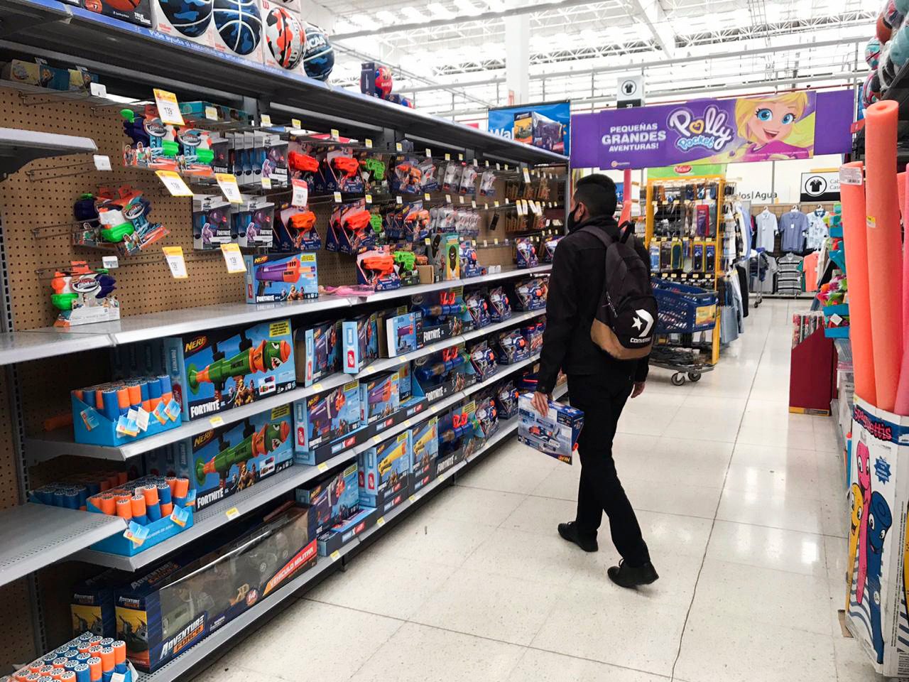 Encentros comerciales como WalMart, Bodega Aurrera y Soriana aumentó el volumen de mercancía dentro de sus pasillos principales, previo mayor venta de juguetes del año sin que exista alguna restricción en la venta de los productos.