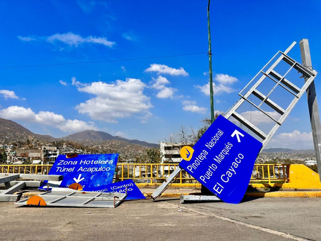 Al entrar a Acapulco y cruzar la caseta, se ven letreros de gente pidiendo ayuda. Faltan medicamentos, agua potable y alimento, pero las condiciones sanitarias comienzan a preocupar.