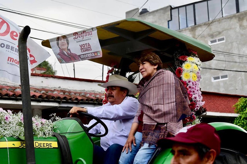 En Tenancingo, los pobladores llevaron a la morenista en un tractor al lugar donde sería del evento. Ya en el sitio, la maestra Delfina recalcó que crearía la Policía de Género para apoyar a las mujeres de la entidad mexiquense.