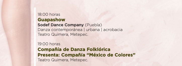 - Lugar: Metepec (Teatro Quimera) y Toluca (Centro Cultural Mexiquense)