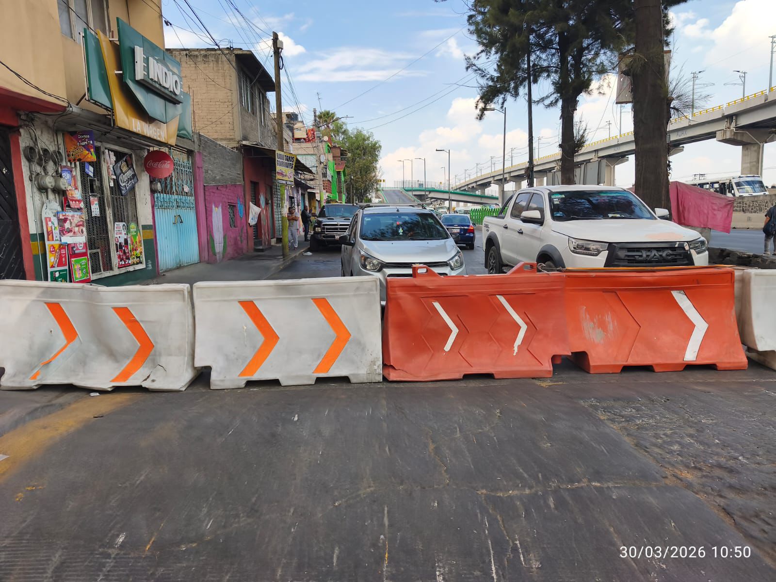 Las obras forman parte del desarrollo del Trolebús Chalco–Santa Martha, proyecto iniciado en 2025 y que aún mantiene estaciones en construcción sobre la autopista.