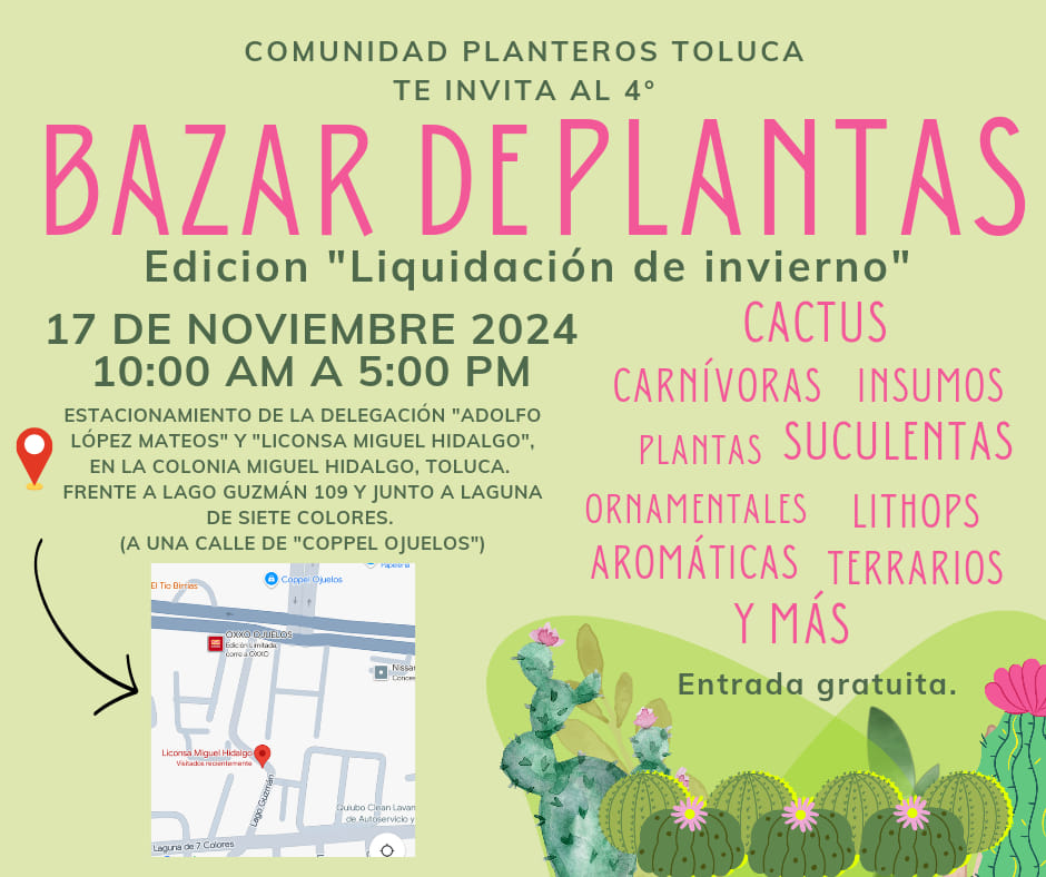 Este 17 de noviembre, ¡es tiempo de renovar tu hogar con las mejores plantas! Acompáñanos en el Bazar de Plantas que se llevará a cabo con motivo de la liquidación de invierno. No te lo puedes perder.
