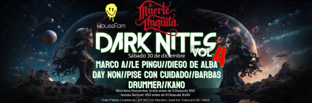 Para los amantes de la vida nocturna, llega este último evento del año en La Muerte Chiquita. Escucharás a algunos maestros de la tornamesa y lo mejor es que si eres cliente frecuente del lugar no pagas acceso.