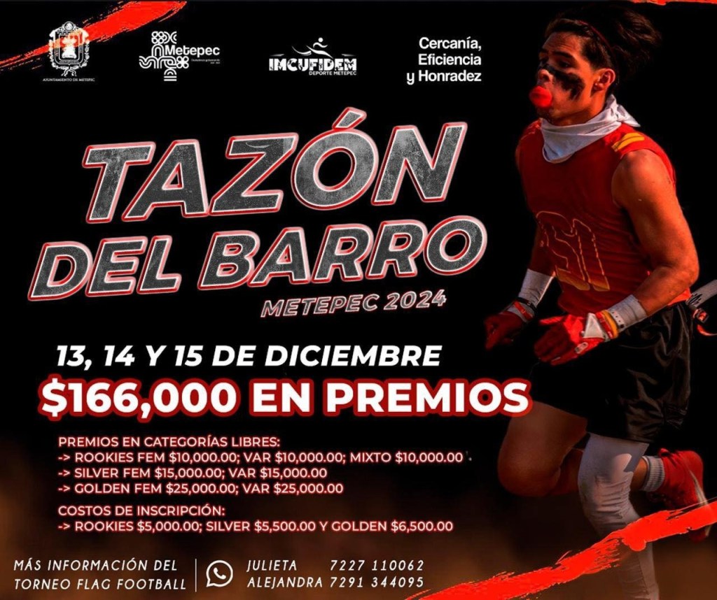 - Tazón del Barro: Del 13 al 16 de diciembre, no te pierdas este torneo de flag football, con premios por un total de 166,000 pesos.