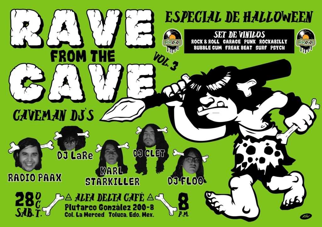 Escucharás un set de vinilos de rock & roll, garage, punk, rockabilly, surf y más de la colección de músicos locales. Además, podrás llegar con el disfraz más psicodélico.