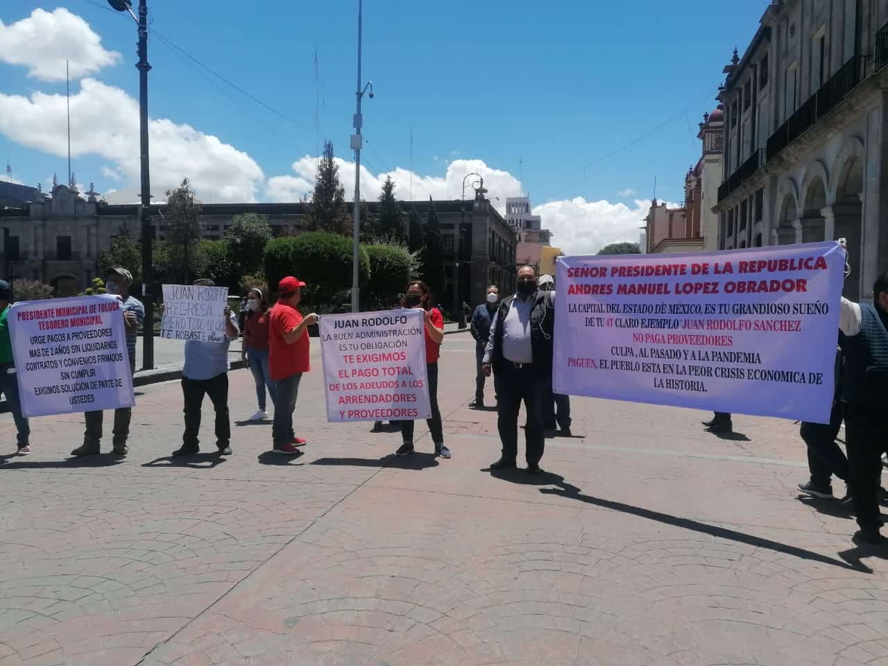 30 proveedores que prestaban servicio al Ayuntamiento de Toluca se manifestaron esta mañana para demandar al alcalde, Juan Rodolfo Sánchez Gómez, pagos pendientes que suman aproximadamente a 80 millones de pesos.