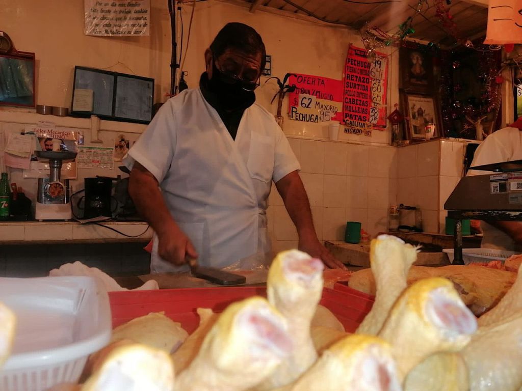 El hombre de la tercera edad recuerda que antes vendía hasta 50 kilos de pollo: “la pechuga anda en 120 pesos, aquí la tengo en 100 pesos para poder ayudar, pero de unos meses para acá ha incrementado y pues también ya no es sostenible”.