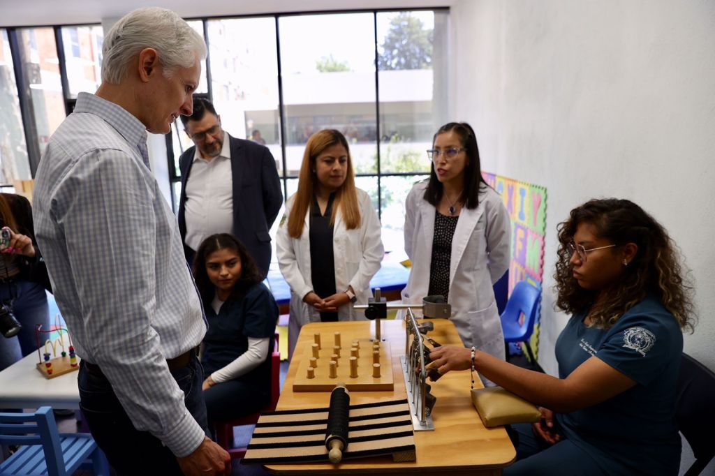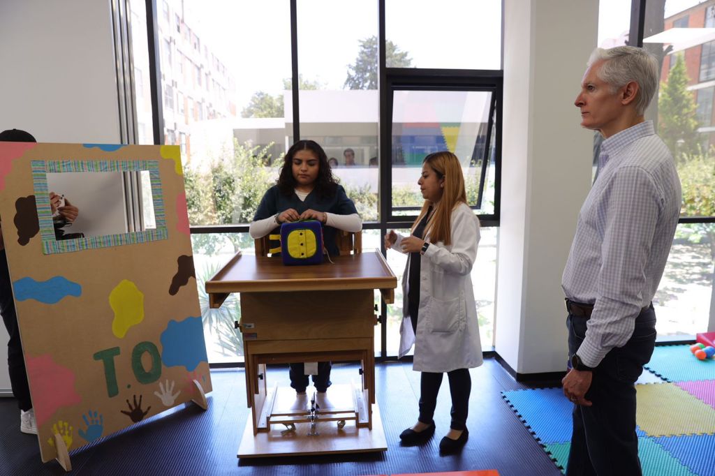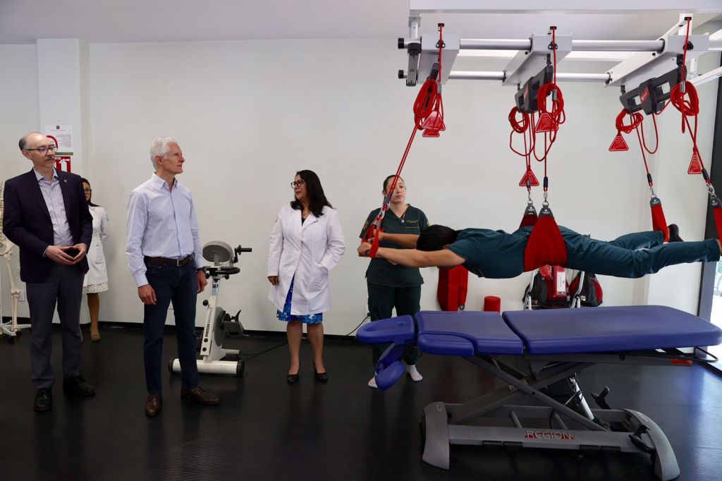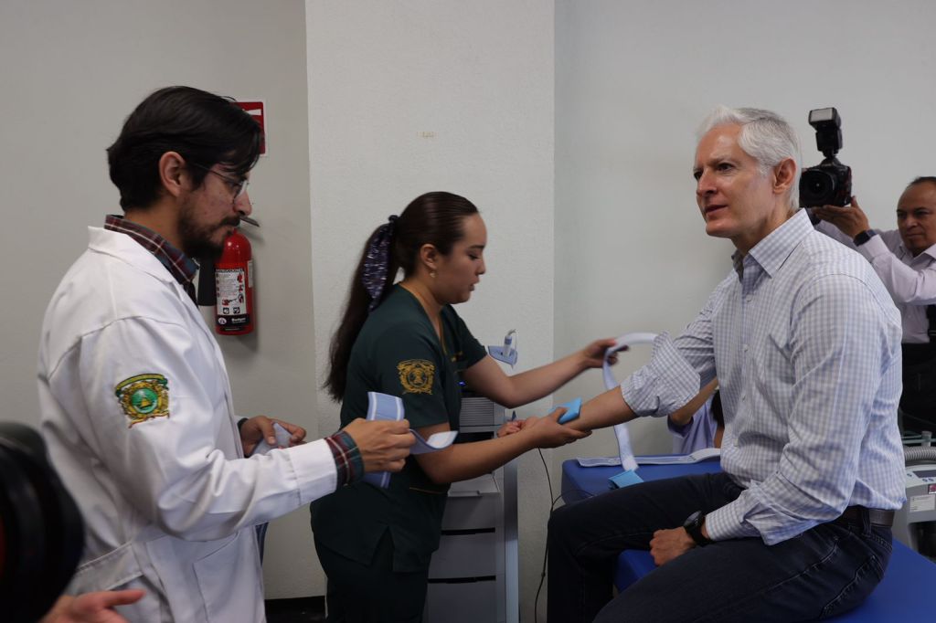 En compañía del rector de la UAEMex, Carlos Eduardo Barrera Díaz, Alfredo del Mazo conoció este nuevo Centro de Atención en Fisioterapia para la formación de universitarios calificados para las carreras de fisioterapia y terapia ocupacional, al tiempo de consolidar a los sectores clínico, académico y de investigación en el área de la fisioterapia.