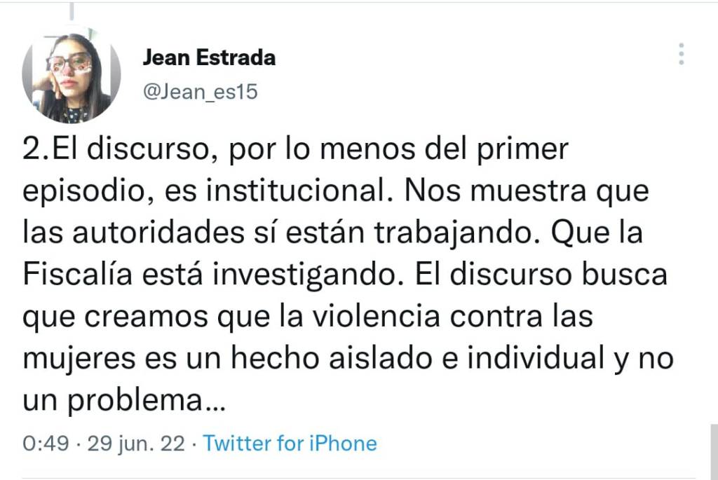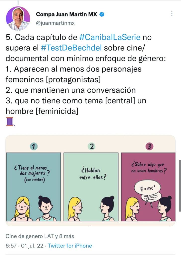 De esta serie que pretendía generar conciencia sobre los feminicidios también se destacó, especialmente en redes sociales, el protagonismo de Andrés Filomeno, el feminicida; otro aspecto que llamó la atención se tiene en el hecho de que no presentó el “mínimo enfoque de género”, de acuerdo con el Test de Bechdel.