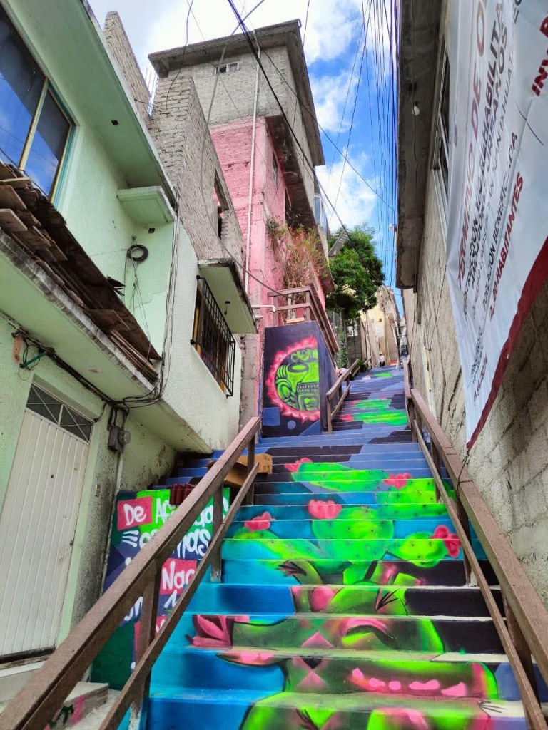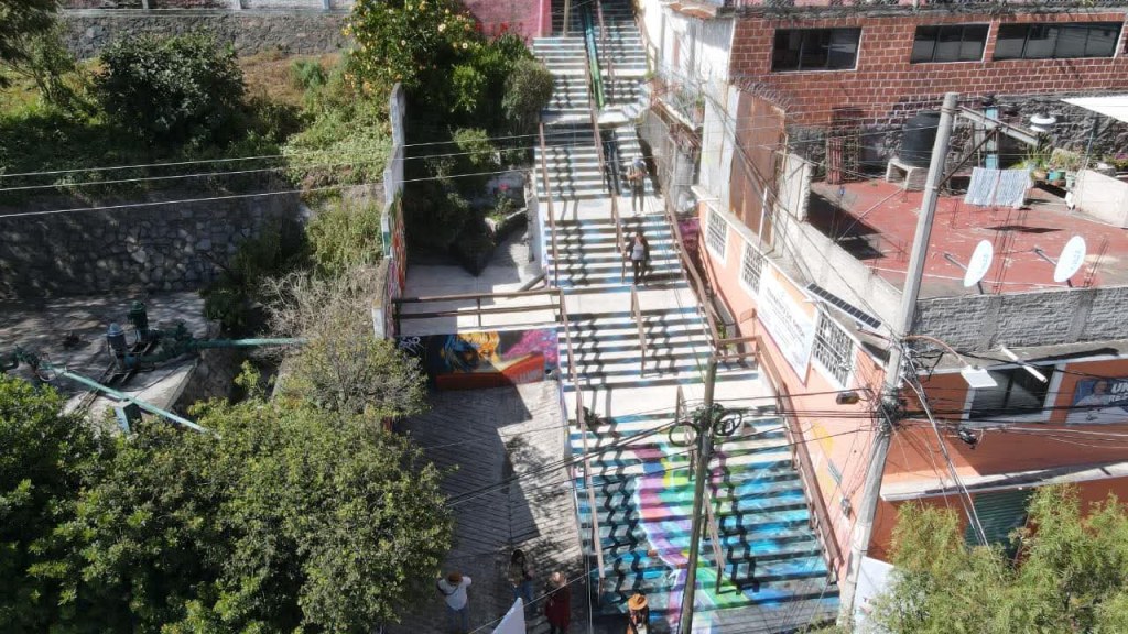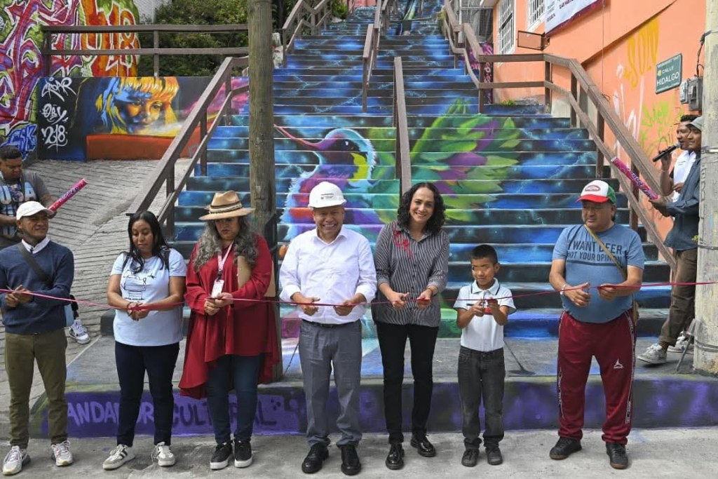 Las y los vecinos de la colonia Lomas de San Juan Ixhuatepec cuentan con dos andadores rehabilitados de manera integral que les permiten caminar de forma más segura, además la comunidad luce una nueva imagen ya que se contó con la participación de artistas que plasmaron impactantes imágenes en las escalinatas.