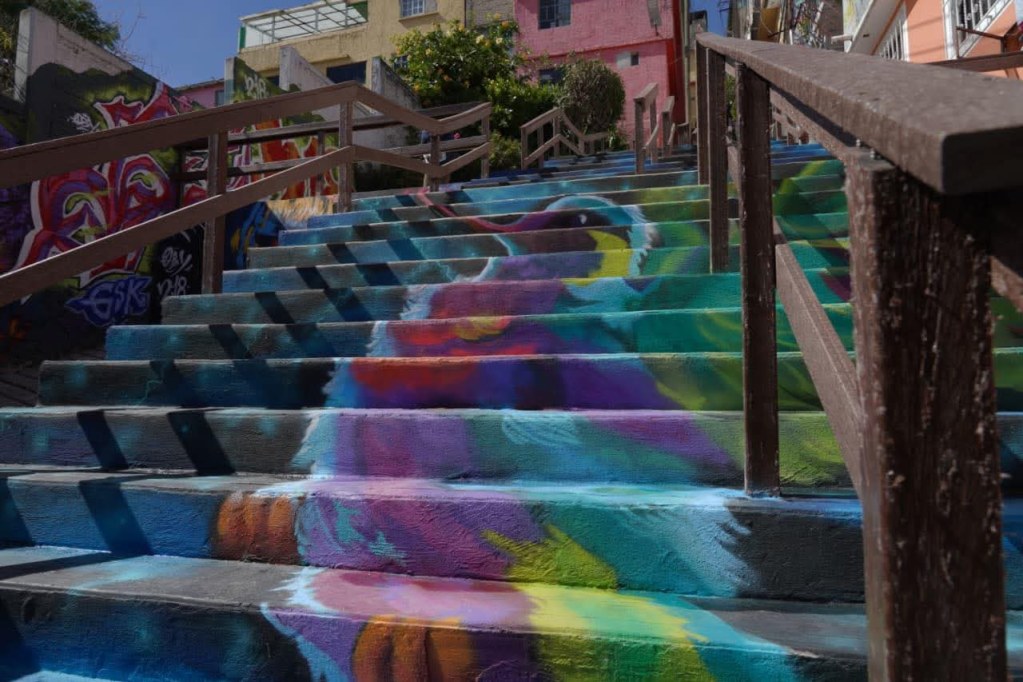 También se realizó la construcción de cinco pozos de visita y tres registros sanitarios, construcción de escalones y descansos de concreto, colocación de barandal y pasamanos, aplicación de pintura de mural artístico en escalones y jardineras, así como la colocación de luminarias tipo LED.
