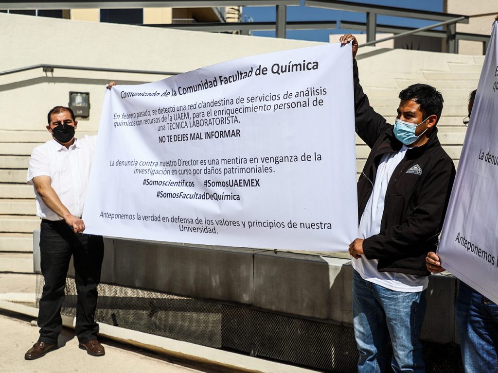 Cerca de 200 integrantes de la comunidad universitaria marcharon la mañana de este viernes para manifestar su apoyo al director de la Facultad de Química, Víctor Varela, quien tiene una denuncia por acoso sexual ante la Fiscalía del Edomex y la universidad. En el acto, los administrativos, profesores y alumnos aseguraron que la acusación es falsa y es resultado de una investigación en curso –por daños patrimoniales– contra la denunciante.