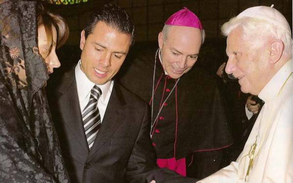 Carlos Aguilar Retes con el expresidente Enrique Peña Nieto y su exesposa Angélica Rivera en su visita a Roma. / Foto: Especial