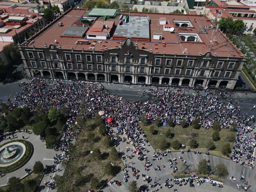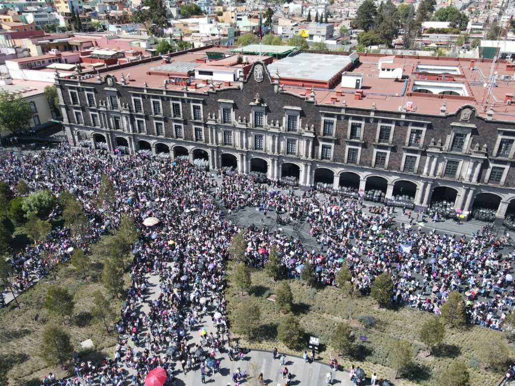 Las mujeres que asistieron a la marcha por el Día Internacional de la Mujer se congregan en este punto del centro de Toluca.