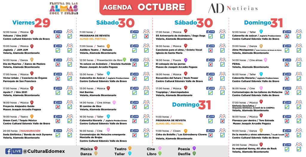 La XIX edición del Festival de las Almas 2021 cumplió su segundo día de actividades en Valle de Bravo; dedicado a los 50 años del Festival de Avándaro: Rock y Ruedas, este encuentro cultural ha presentado diversas actividades y amplia participación del público que ha tenido que cumplir con las respectivas medidas de sanidad.