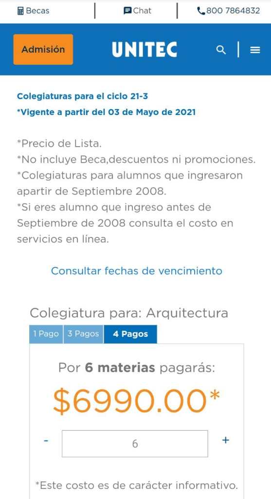 “Actualmente mi mensualidad es de 2,987.00, con el aumento, por materia, estaría pagando mil 165 pesos… si llevo seis materias, estaría pagando 6 mil 999 según la calculadora de UNITEC… considerando que me respetaran mi beca, sería de 5,950.00, lo que representa casi el doble”
