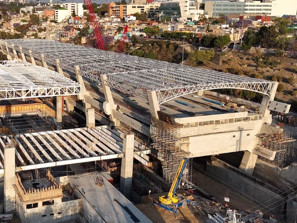 El techado también presenta avances considerables al observarse la altura y los niveles que tendrán los carriles.
