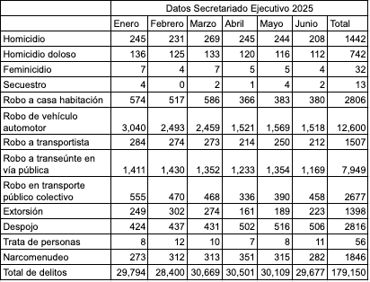 En 2024, el Estado de México acumuló 1,062 homicidios dolosos en el primer semestre del año. En 2025, la cifra bajó a 742. Esta disminución ha sido presentada como un logro institucional por parte del gobierno mexiquense, encabezado por la gobernadora, Delfina Gómez.