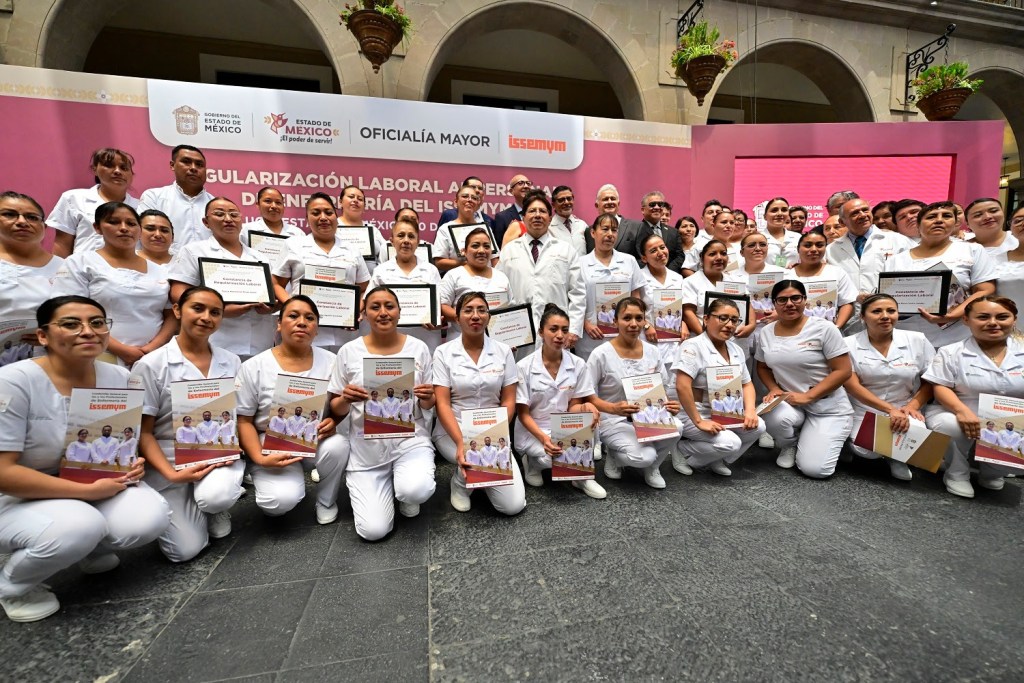 “Hoy saldamos una deuda más, iniciamos la regularización laboral de las enfermeras y enfermeros de nuestra institución, que es el ISSEMyM, gracias a un detallado trabajado en equipo se logra la liberación de 100 plazas para la basificación del personal de enfermería contratado bajo la modalidad de eventual, vamos a beneficiar a sus familias, con el ánimo genuino, pero, sobre todo, con el derecho de vivir con tranquilidad y estabilidad en su trabajo”, refirió la gobernadora.