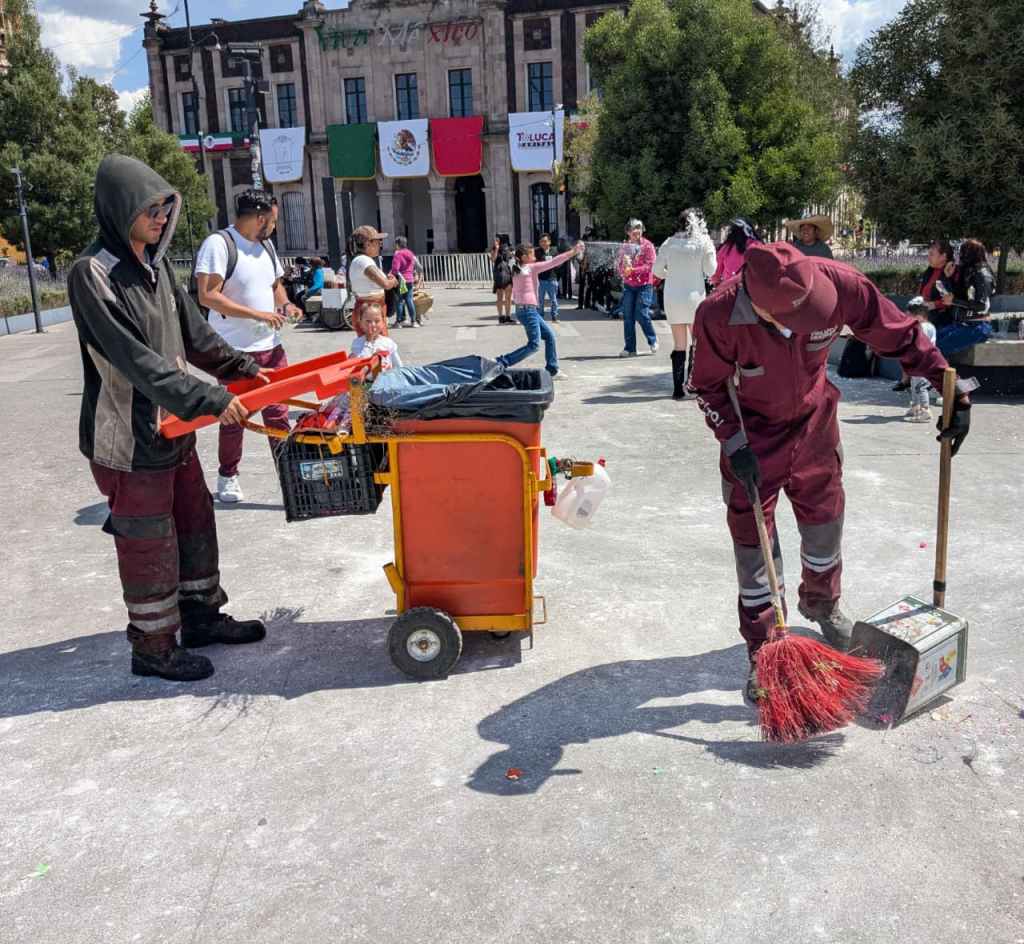 Tras los festejos patrios, trabajadores de Servicios Públicos de Toluca recolectaron 13 toneladas de basura en dos jornadas de limpieza, por instrucción del alcalde Ricardo Moreno.