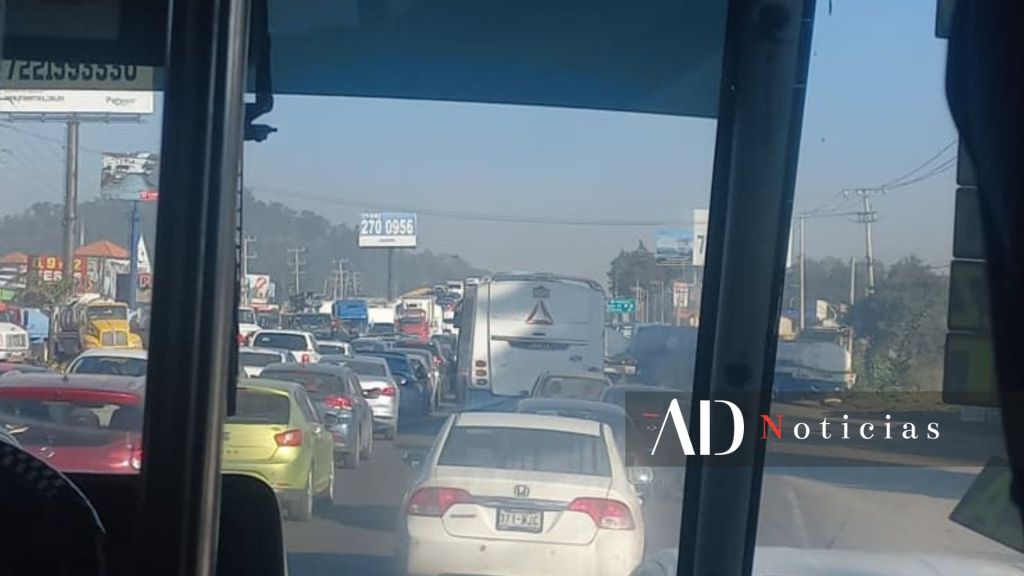 Desde primeras horas de este lunes 27 de octubre, piperos bloquean la carretera Toluca-Tenango a la altura de San Miguel Totocuitlapilco, provocando largas filas y tráfico detenido.