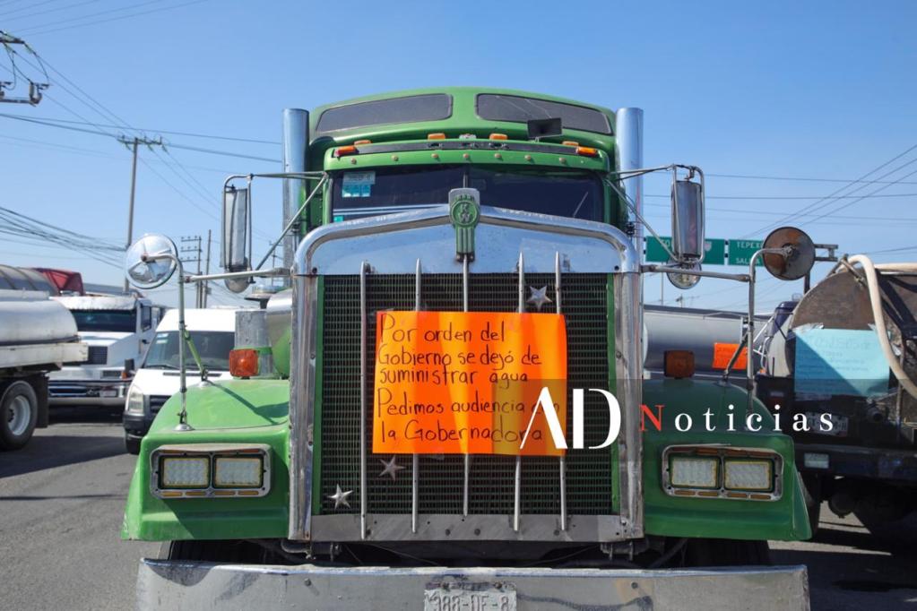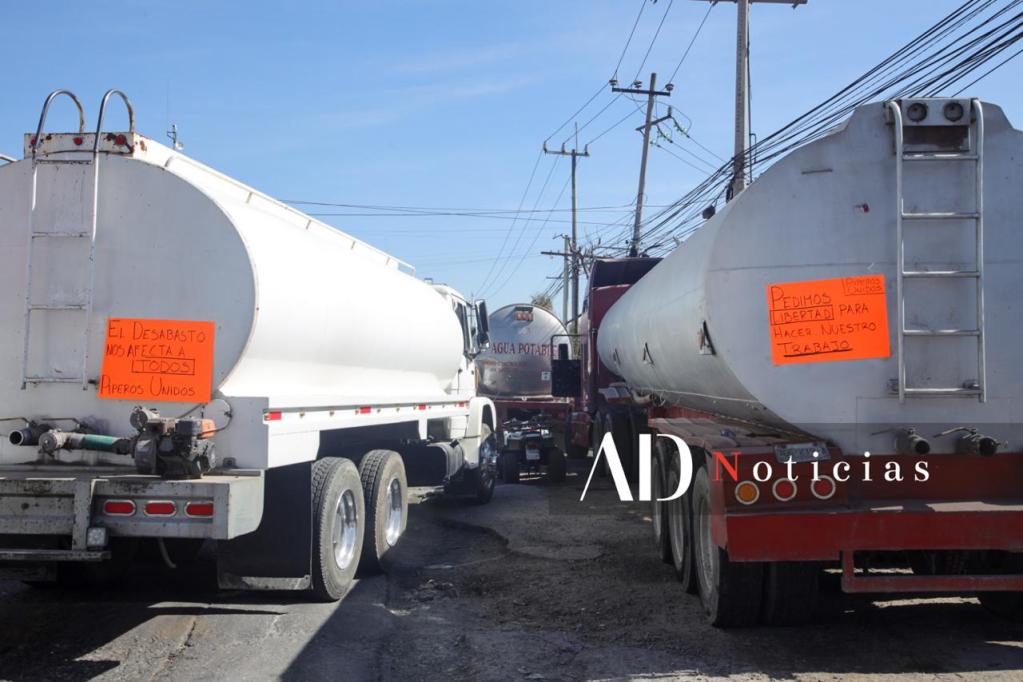 Las y los manifestantes denuncian presuntas irregularidades y restricciones en el suministro de agua tras la Operación Caudal, por lo que atravesaron sus unidades para impedir el paso.