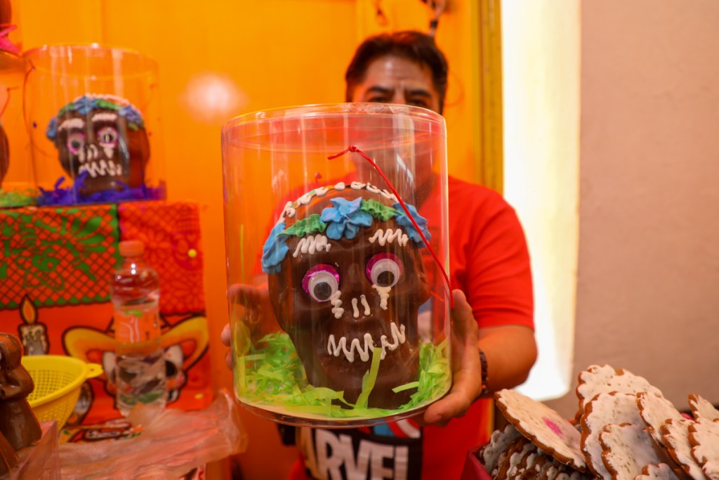 Pero no te equivoques, lo que realmente pone el toque especial a estas obras maestras son los moldes mismos, ¡un arte dentro de un arte! Y sí, ¡son 84 puestos de calaveritas de azúcar y chocolate que se unen para crear una sinfonía de nostalgia y dulzura! ¡Un tributo a los seres queridos que ya no están físicamente, pero permanecen vivos en nuestros corazones y memorias!