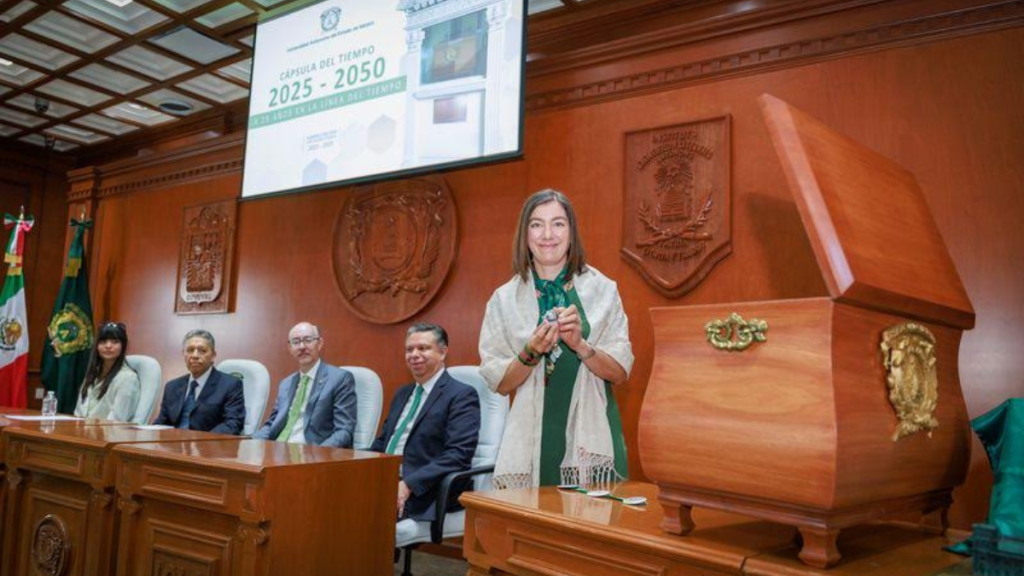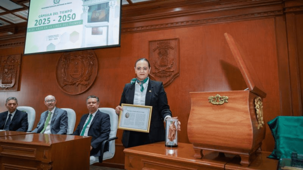 La Universidad Autónoma del Estado de México (UAEMéx) selló la segunda cápsula del tiempo, que se abrirá en abril de 2050, al cumplirse 25 años desde la creación de la primera cápsula que preservó la historia institucional.