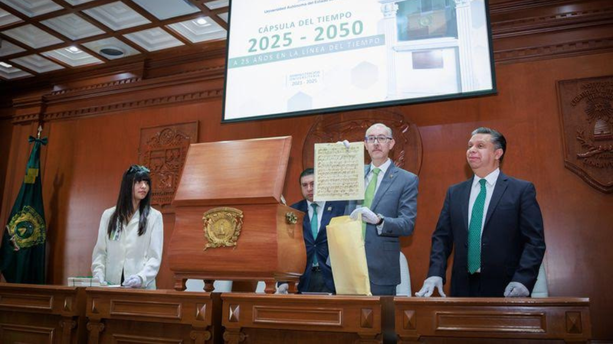 La Universidad Autónoma del Estado de México (UAEMéx) selló la segunda cápsula del tiempo, que se abrirá en abril de 2050, al cumplirse 25 años desde la creación de la primera cápsula que preservó la historia institucional.