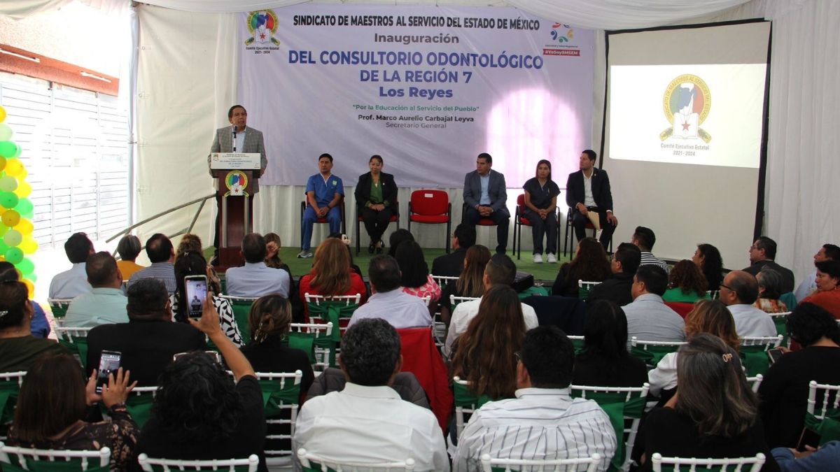 Marco Aurelio Carbajal Leyva, secretario general del Sindicato de Maestros al Servicio del Estado de México (SMSEM), inauguró el Centro de Especialidades Odontológicas (CEsO) de la Casa Sindical de Los Reyes Acaquilpan. Este acto representa la culminación de un esfuerzo por equipar cada Casa Sindical con un centro especializado para el cuidado de la salud bucal de los docentes afiliados al SMSEM y sus familias.