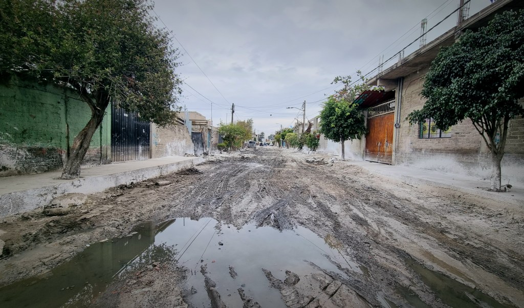 De camino a su escuela, la primaria Netzahualcóyotl, Tadeo esquivó algunos charcos y el lodo cubierto de cal que aún no ha sido limpiado. El olor a podredumbre persiste en algunas calles. En su casa, el drenaje todavía no funciona, por lo que tiene que ir al mercado, donde colocaron baños portátiles.