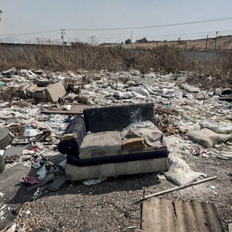 El predio, que además es utilizado como paso vehicular hacia una gasolinera cercana y conexión con dirección a Ixtapaluca, presenta acumulación constante de basura doméstica y desechos voluminosos como muebles, electrodomésticos, llantas y restos de construcción.
