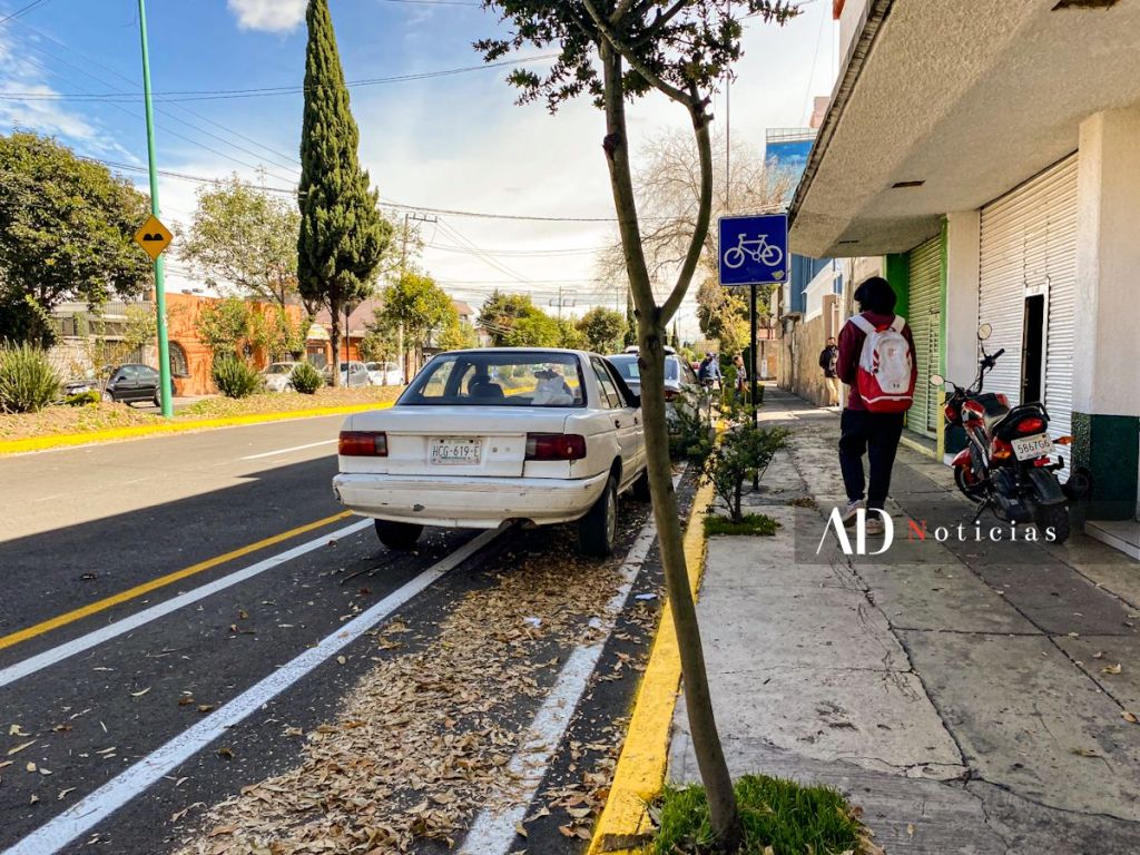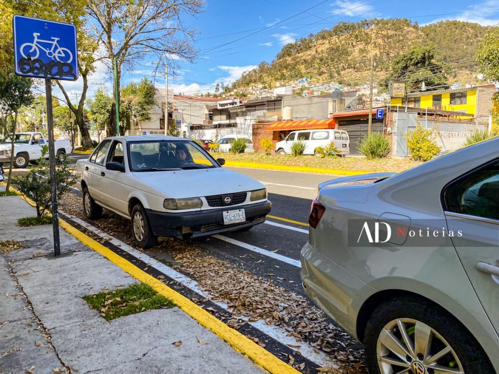 Una de las soluciones del Ayuntamiento de Toluca fue pintar la ciclovía de la avenida Miguel Hidalgo, sin embargo, la poca cultura vial de los toluqueños se mostró al no respetar la delimitación y utilizarla como estacionamiento.