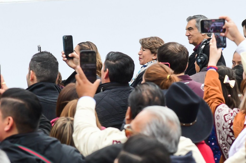 La gobernadora Delfina Gómez Álvarez acompañó a Sheinbaum en el Zócalo de la Ciudad de México, donde resaltaron los avances de la Cuarta Transformación en la entidad.