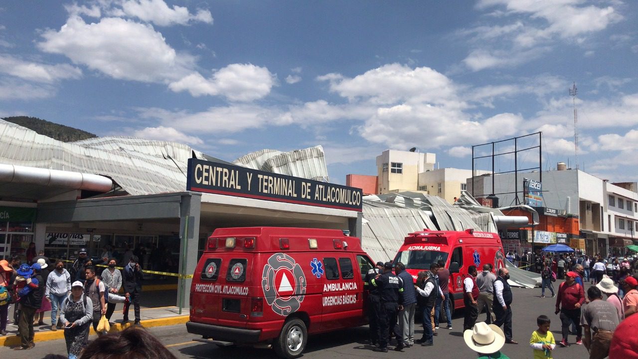 El techo de la terminal de autobuses de Atlacomulco colapsó este lunes. El incidente fue causado por fuertes vientos. No se reportaron heridos, solo daños materiales aunque el servicio será suspendido hasta nuevo aviso.