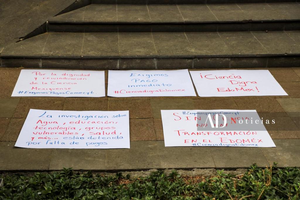 Portando pancartas con lemas como «recursos, no discursos», «sin ciencia no hay transformación en el Edomex» y «somos la producción intelectual precarizada del Estado de México», estos especialistas también señalaron a los medios de comunicación presentes la ausencia de apoyo económico correspondiente a noviembre, diciembre y enero.
