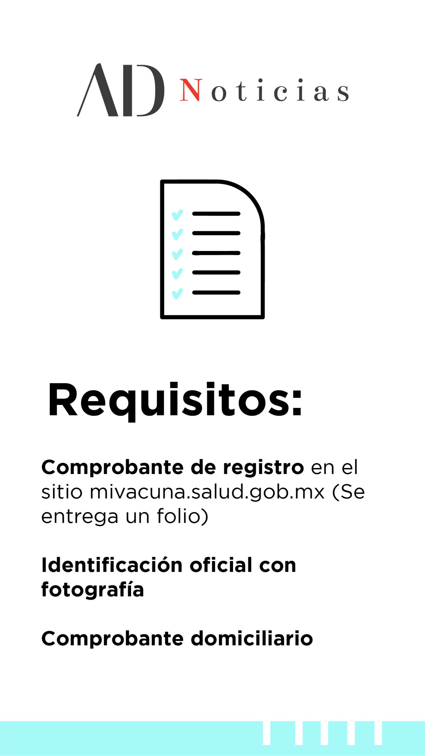 Deberán presentar registro oficial del portal https://mivacuna.salud.gob.mx/index.php, más una identificación oficial; en caso de no tener este trámite llevar credencial del INE o del INAPAM, además de la CURP.