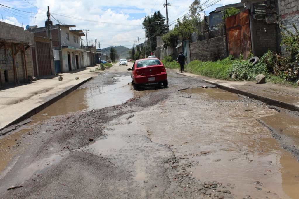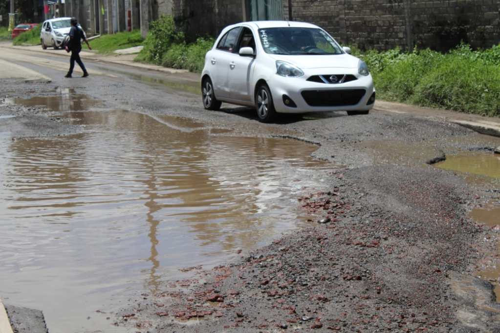 Tramos carreteros que conducen hacia la delegación de Calixtlahuaca, al norte de la capital mexiquense, presenta daños en la carpeta asfáltica, lo que ha generado baches e inundaciones en esta temporada de lluvias.
