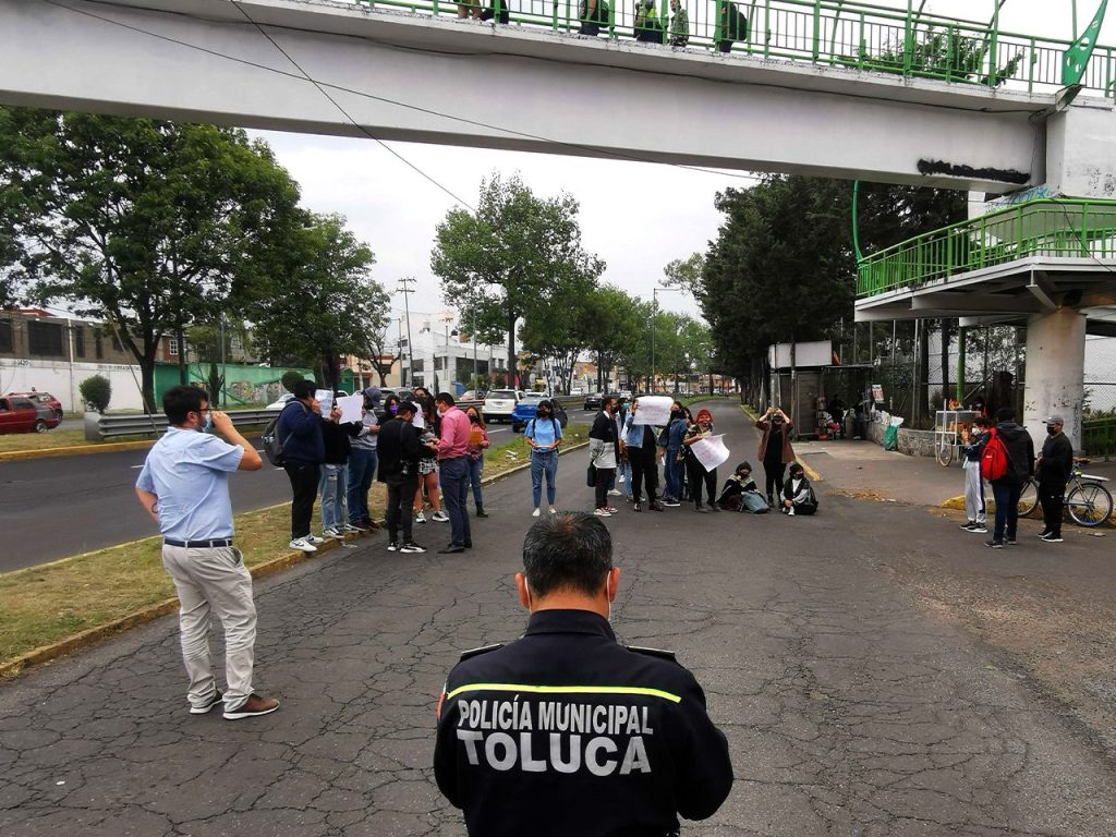 Entonces el contingente –conformado en su mayoría por mujeres– cobró fuerza y anunció su exigencia: “que las autoridades municipales acudieran para recibir una petición de mayor seguridad”. Los medios lo dieron a conocer la solicitud de los estudiantes, pero el director de Seguridad Universitaria de la UAEMex y la Subsecretaría de Gobierno Valle Toluca tardaron alrededor de 50 minutos en llegar.