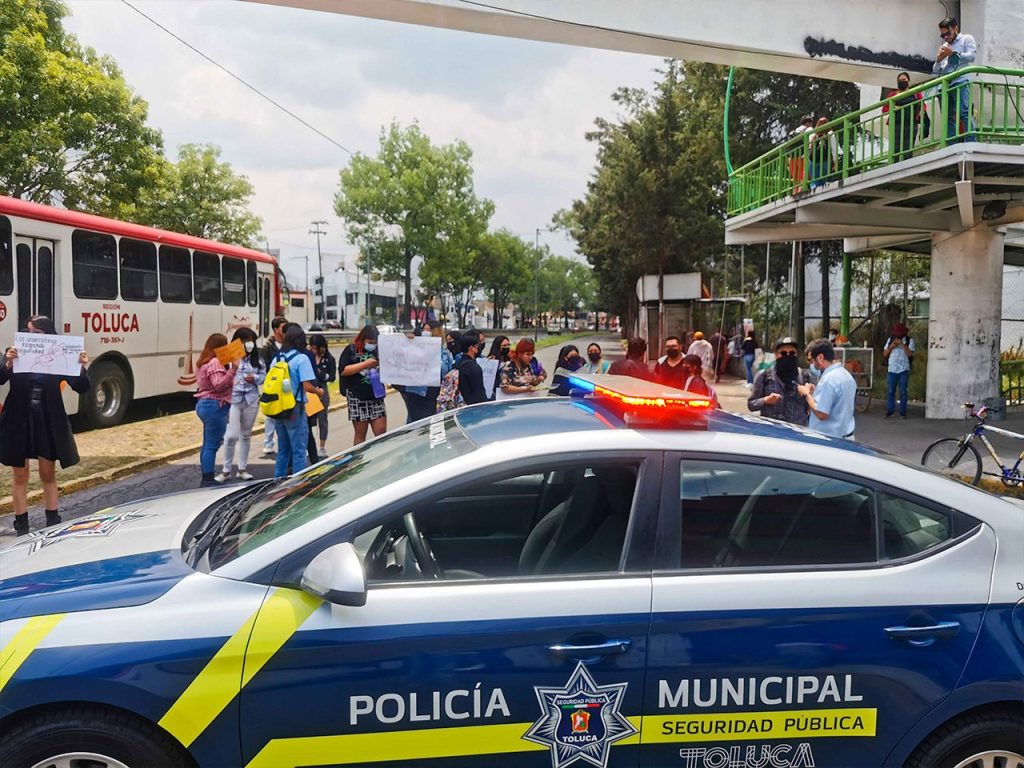 Pese a que la policía municipal anunció que mantenía guardia en el puente de Humanidades que atraviesa Tollocan, tardaron cerca de quince minutos para que dos patrullas llegaran y resguardaran a los manifestantes; aun así fueron más rápidos que el personal de transito de Toluca, quienes llegaron casi una hora después.