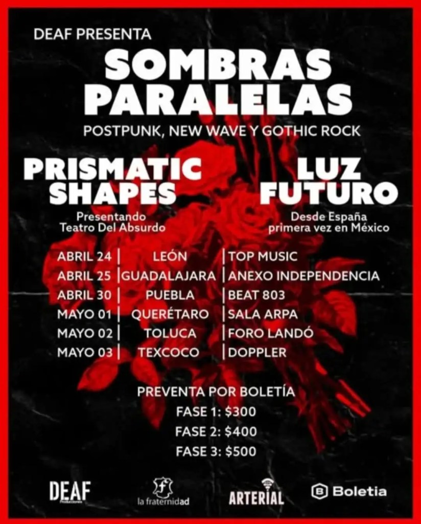 - Viernes 2 de mayo: Prismatic Shapes y Luz Futuro – Dúo que explora sonidos synth-pop y post-punk con una estética retro y atmosférica.