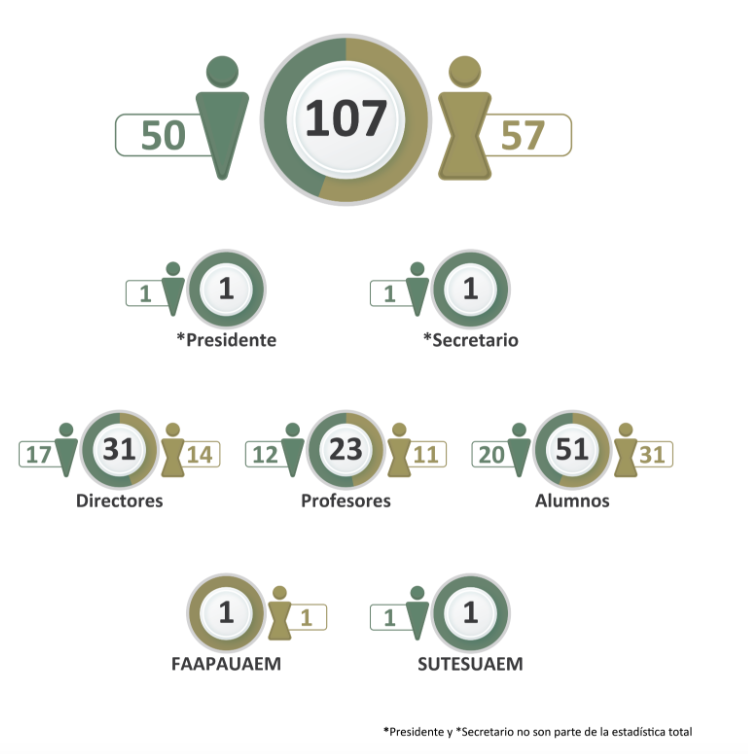 El Consejo Universitario está compuesto por 107 miembros, distribuidos de la siguiente manera: