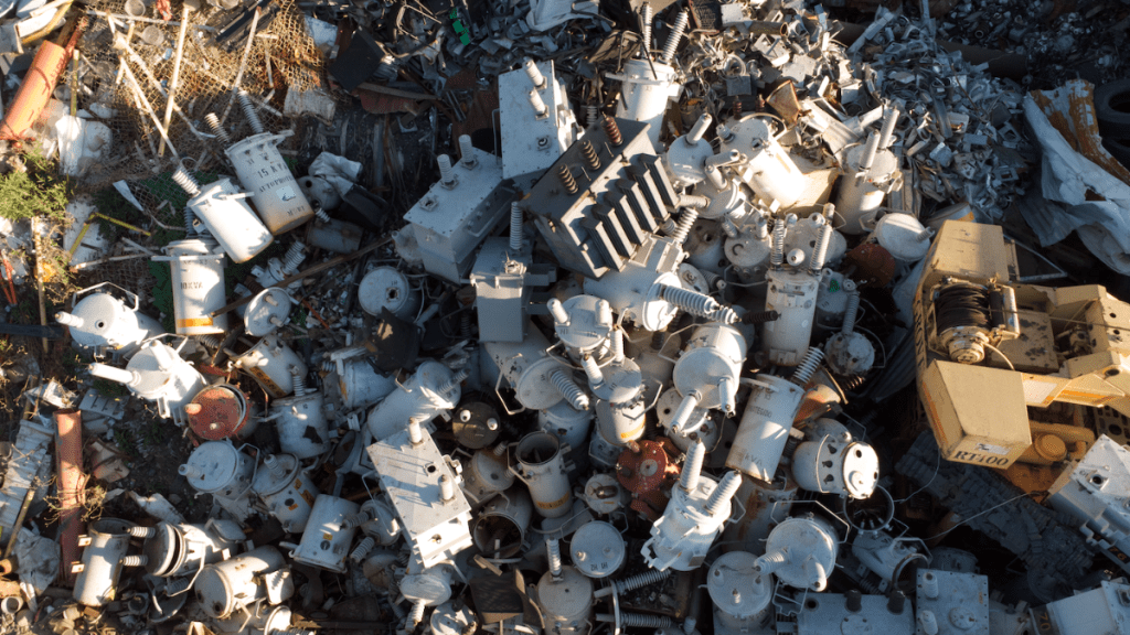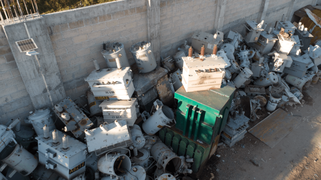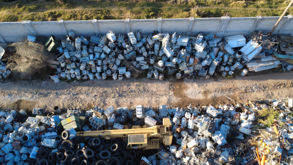 Con vuelo de dron, AD Noticias descubrió en el predio materiales almacenados. Entre ellos, llantas, varillas, mangueras, cables, medidores, aislantes, maderas, tubos de PVC y hasta una camioneta de la CFE Irapuato. Estos materiales están, todavía, arrumbados en montículos sin ningún tipo de separación o de tratamiento especial.