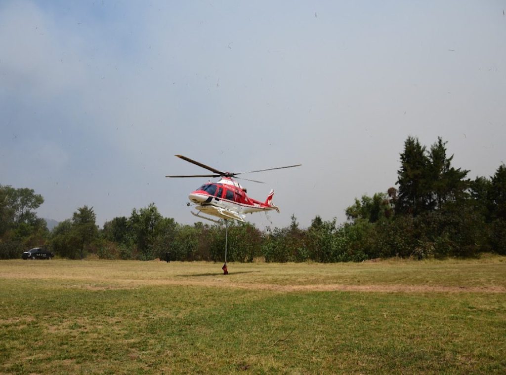 Se contó con el apoyo de cinco camiones-cisterna, dos ambulancias y un helicóptero del Grupo Relámpagos, con el que se realizaron sobrevuelos de reconocimiento y un total de 51 descargas de agua en la zona afectada.
