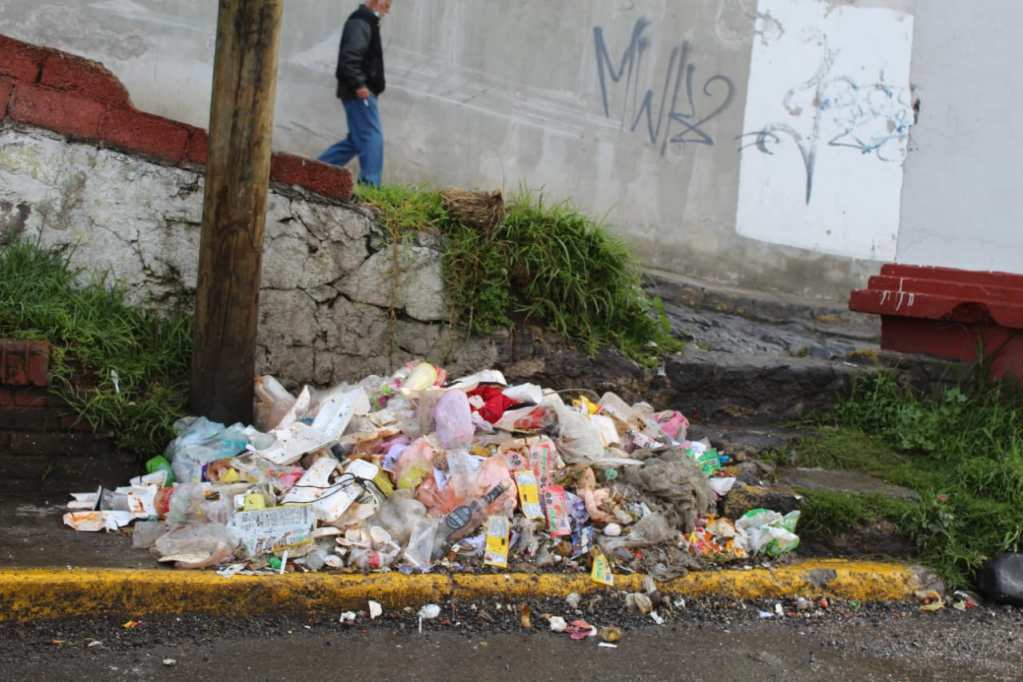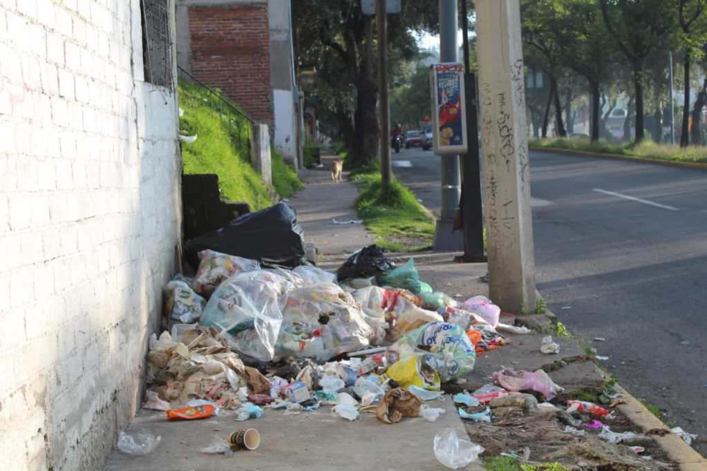 Un breve recorrido por las calles de Toluca permite identificar múltiples puntos donde vecinos tiran su basura. En la esquina José María Arteaga y Nicolás Bravo –en pleno centro de la ciudad– es común encontrar la basura acumulada y esparcida por perros, bloqueando la banqueta.