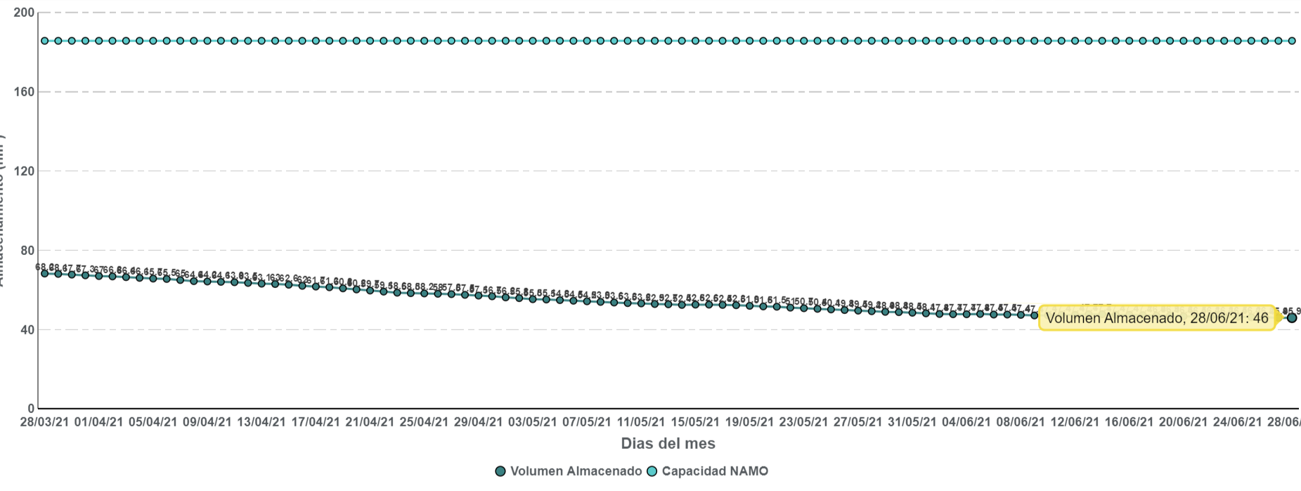 Niveles de la presa de Villa Victoria, Estado de México, del 2019 al 2021