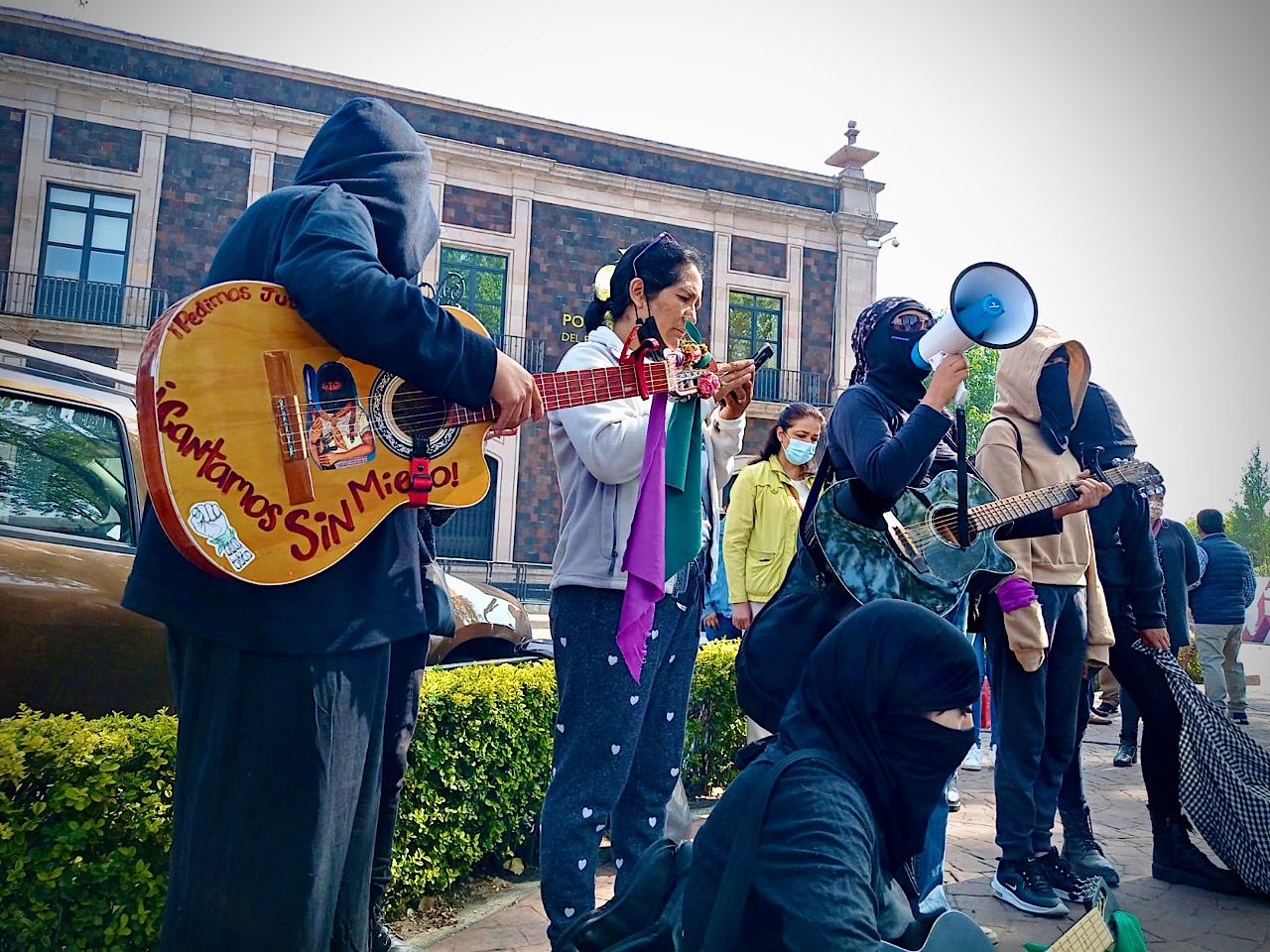 Las mujeres que asistieron también entonaron “Canción sin miedo”, que repasa las condiciones de violencia que experimentan las mujeres en el Edomex, en el país, pero que también habla de resistencia y de todas las que se esmeran en preservar su vida y la de las demás. “Ya no sé qué hacer con esta rabia”, se preguntan los versos de otra de las canciones que entonan.