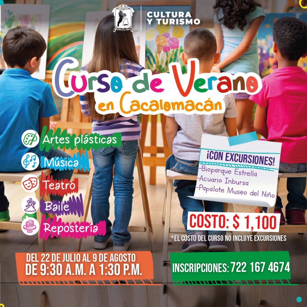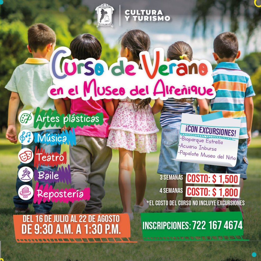 El Museo del Alfeñique y la Delegación de Cacalomacán invitan a los toluqueños a inscribirse en el Curso de Verano 2024. Este incluirá actividades como artes plásticas, música, teatro, baile, repostería y excursiones al Bioparque Estrella, Acuario Inbursa y Papalote Museo del Niño.